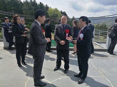 许凯旋董事长受邀参与竣工典礼剪彩 腾博官网诚信为本董事长与华为国际销售总经理、日本PowerMax公司董事长交谈