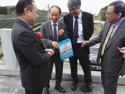 2017年4月25日,由日本中资太阳能企业PowerMax开发、承建、运维的日本岛根县滨田MS太阳能发电站项目举行竣工典礼。日本前首相鸠山由纪夫、中国驻日本大使馆领导及合作方代表近200人出席典礼。腾博会官网·[中国]-诚信为本,专业服务! 许凯旋董事长应邀带队出席。