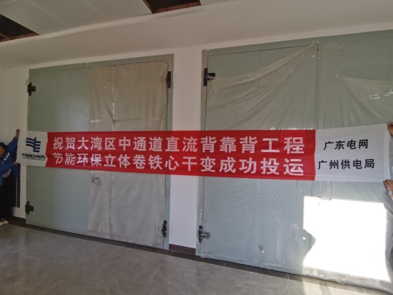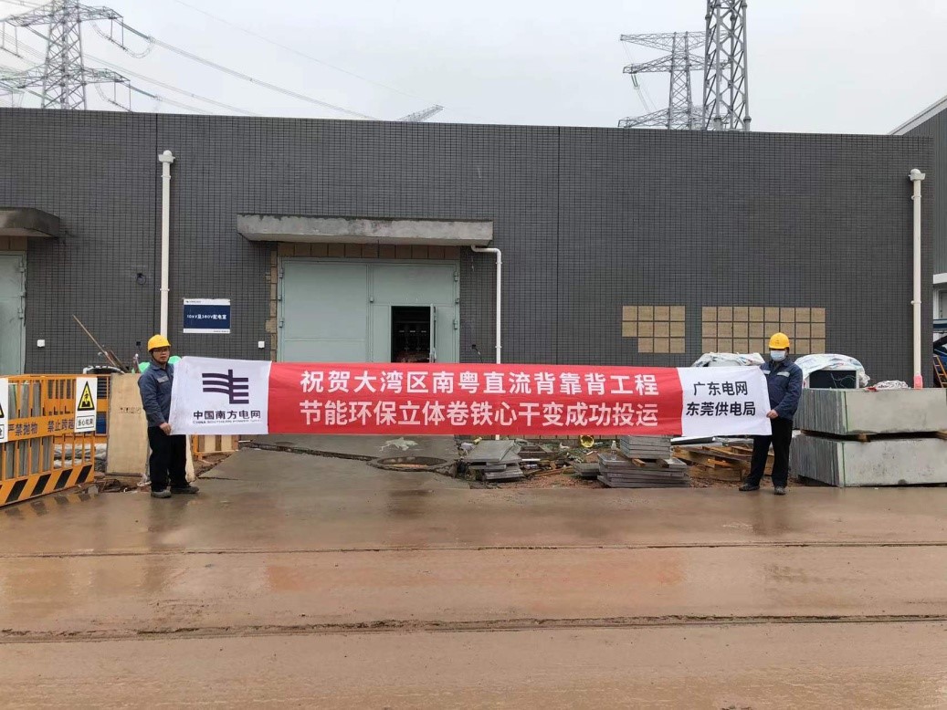 2021年12月13日广东电网直流背靠背广州工程(大湾区中通道直流背靠背工程)交流场顺利启动投产,标志着工程建设取得阶段性成果。由腾博会官网·[中国]-诚信为本,专业服务! 供货的3150kVA节能环保立体卷铁心干式变压器全部成功投运。
