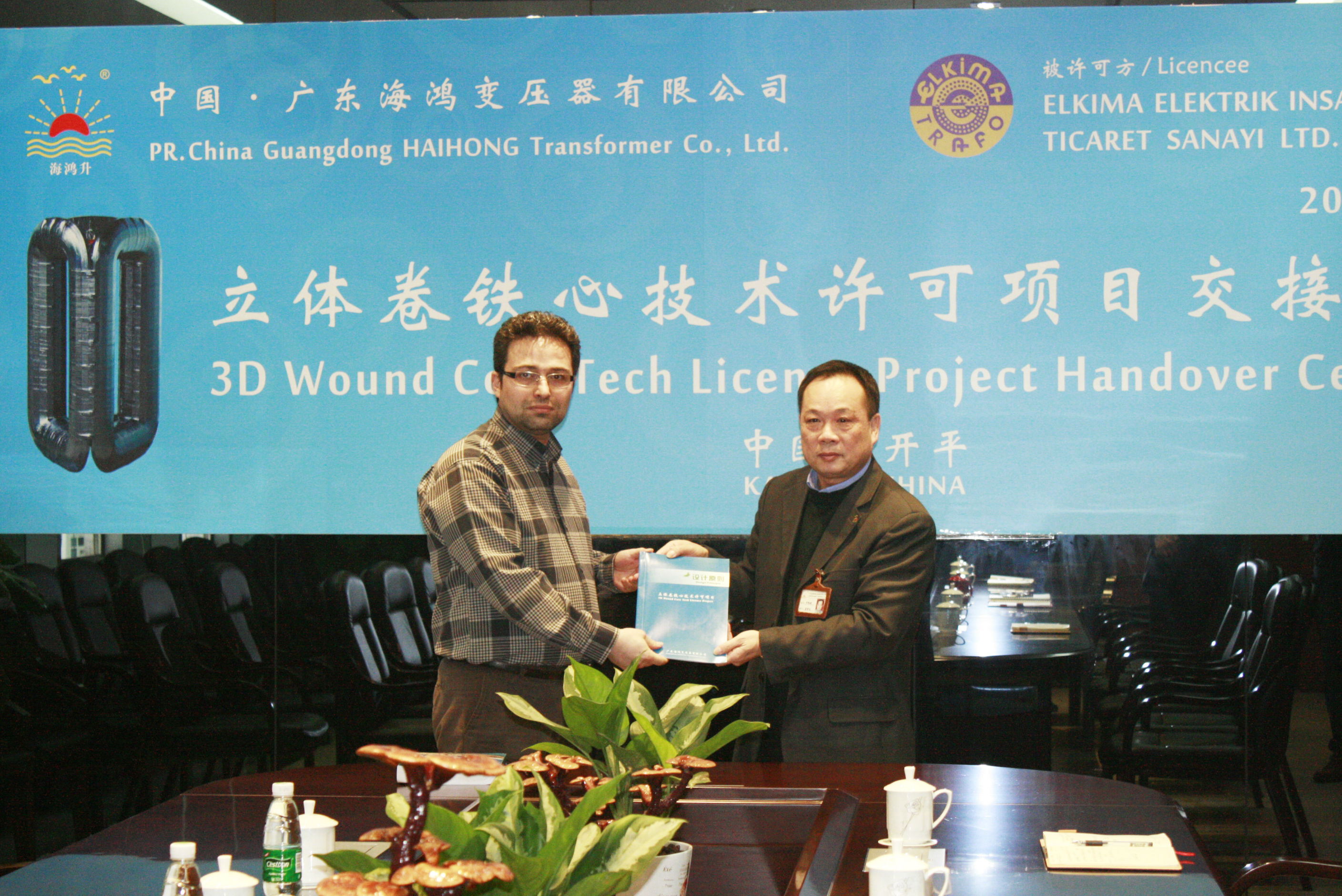 立体卷铁心变压器专利技术许可项目交接现场