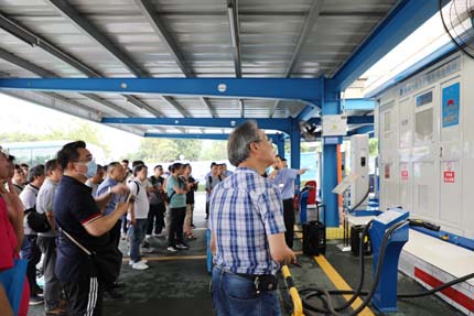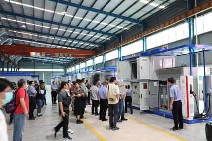 参访团对紧凑式双层预装式变电站及集成一体式汽车充电站表现出浓厚兴趣。两款产品均采用双层模块化设计,大幅缩减设备占地面积(紧凑式双层预装式变电站较传统单层箱变占地面积减少45%,集成一体式汽车充电站较充、配电设备分体充电站占地面积减少56%),上层变压器室可配置两台敞开式立体卷铁心干式变压器。产品均支持灵活扩展储能或光伏模块,为土地资源稀缺的香港提供高效配电、充电方案。