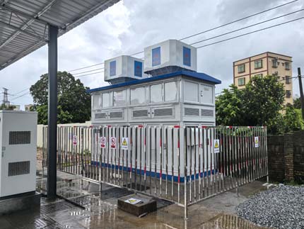 重卡快充站运行功率大,通常需要多台箱变,才能满足配电需求。阳江一重卡快充站为减少建站投入费用,采用腾博官网诚信为本电气首创专利双层双干变箱变。该产品不仅大幅降低项目初期建站成本含设备购买成本、土建施工成本,还实现“一台顶两台”的高效运行,成为重卡充换电站成本控制的“利器”,更是提升建站效率的“加速器”。